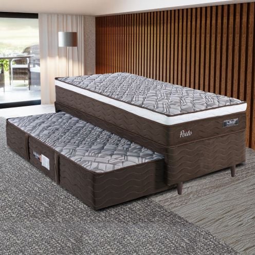 Cama Box Solteiro com Cama Auxiliar (Bicama) Bibox Porto Design 88×188: Cama Extra e Conforto Firme em um Único Conjunto, o produto foi criado para quem deseja unir conforto e praticidade no quarto sem ocupar espaço desnecessário.