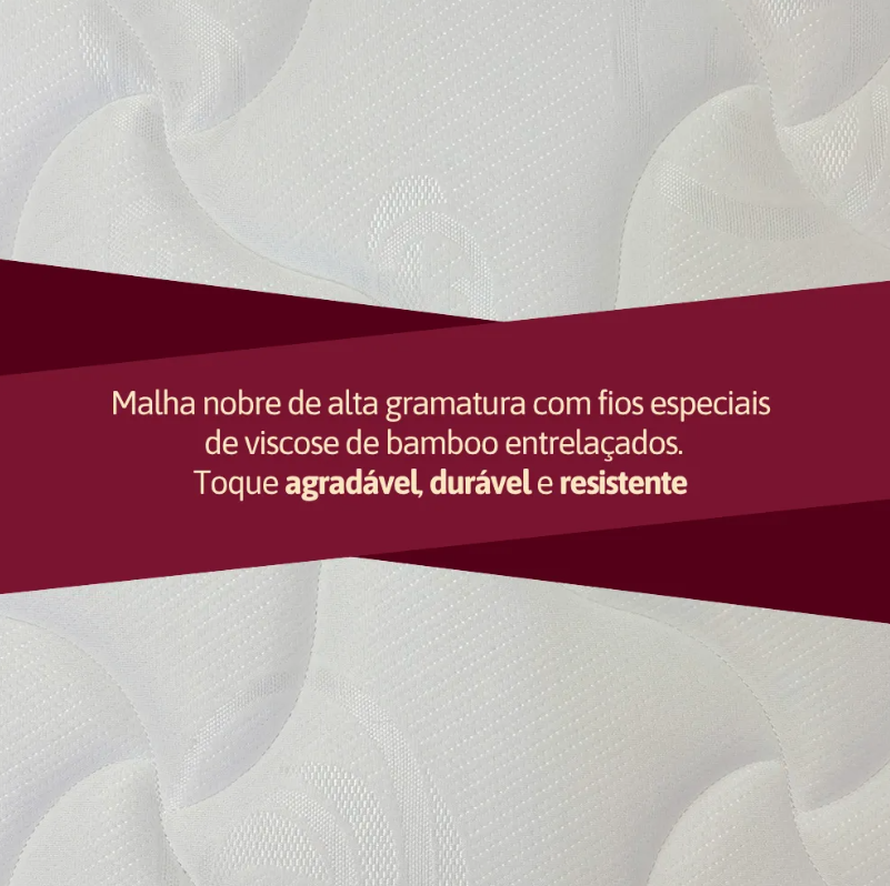 O sistema de molas em fio contínuo entrelaçado tende a entregar uma base mais estável para o corpo, favorecendo uma sensação de sustentação ao deitar e ao mudar de posição durante a noite. As camadas internas com feltro e espumas de suporte ajudam no acabamento e na distribuição do peso, enquanto o tecido superior com bambu (viscose) contribui para uma sensação mais confortável na superfície.