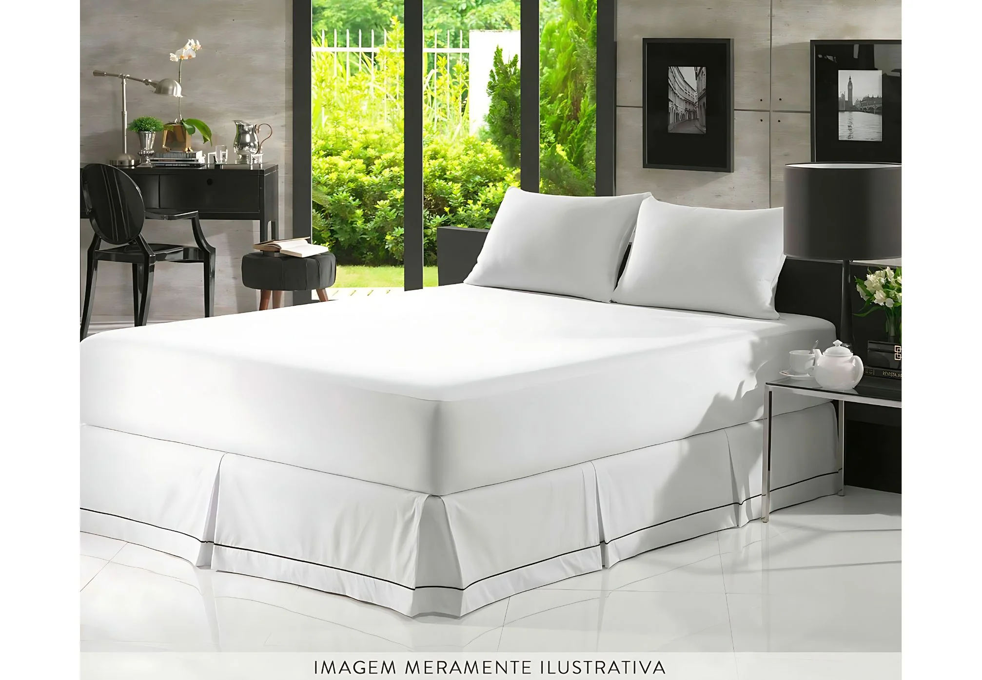 O protetor tem a medida de 193x203x40 cm, é indicado para colchões de King, e possui um acabamento em saia, fornecendo proteção lateral ao colchão.